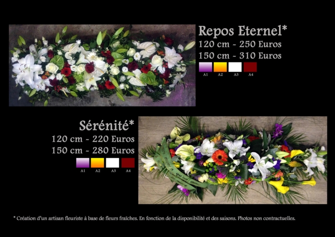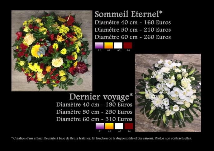 Dans ces moments douloureux pour les familles, L'orchidée sauvage s’efforce de proposer le service le plus complet possible. Nous vous proposons toute une série de services et compositions florales (dessus de cercueil, devant de tombe, coussin rond, coussin conique, gerbe à la main, gerbe piquée, raquette, bouquet bulle, composition, cœur, croix, couronne, coupe de plantes).